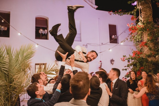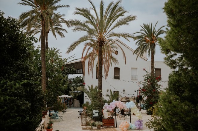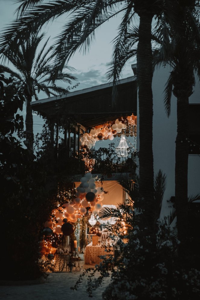 En esta parte de la casa tenemos con una coqueta iluminación verbenera que dará un toque muy especial al evento. Además, la llegar la noche, la fachada se baña de color creando así un ambiente único.
